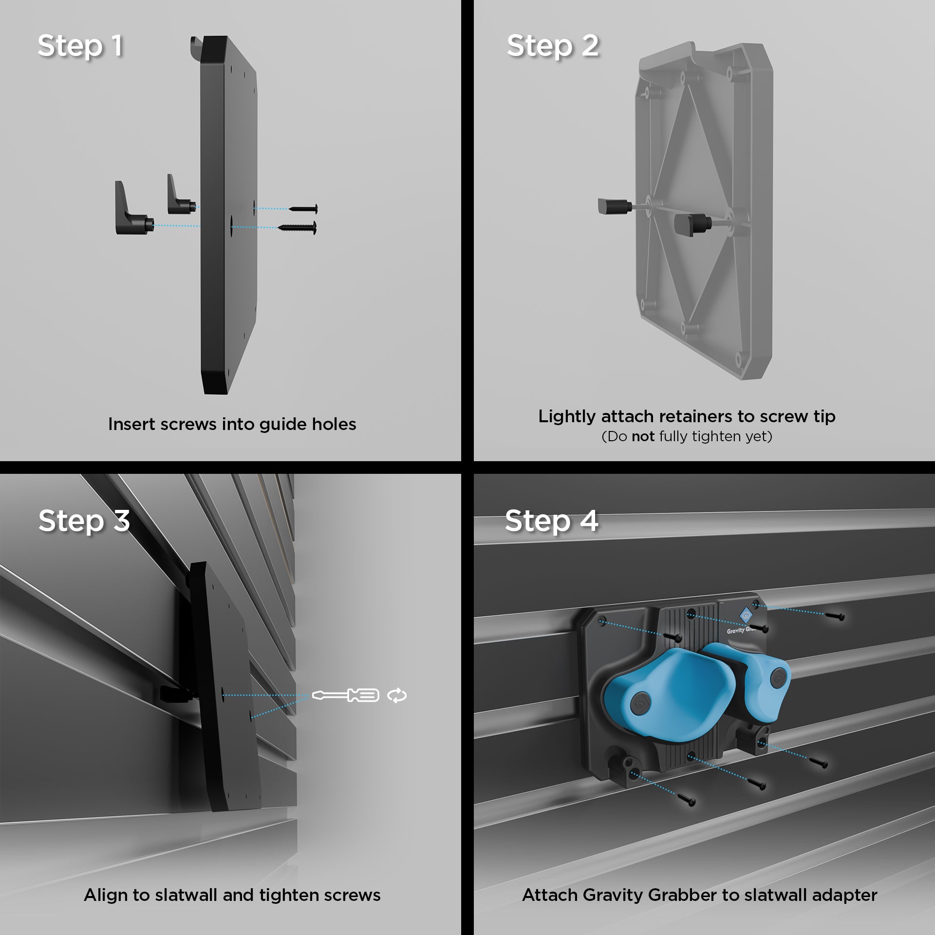 The Gravity Grabber Slatwall Adapter lets you mount your Gravity Grabber directly to standard 3" slatwall, giving you a clean, secure setup that can move as your garage or shop evolves.