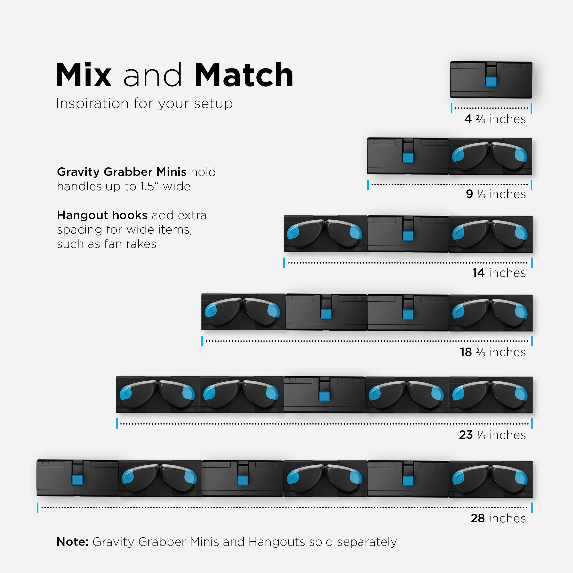 Designed to pair seamlessly with the Gravity Grabber Mini, The Hangout adds intentional spacing for wider tools like fan rakes and awkward-handled gear that needs a little extra room.